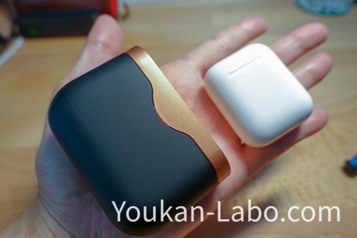 また、充電ケースのサイズが思った以上にデカいです。AirPodsと比べると無茶苦茶でかいですw