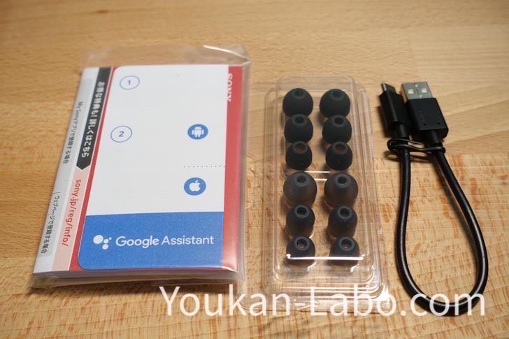 なお、ノイズキャンセリング効果を高める上で大切なのはイヤーピースのサイズ選びで、耳を密閉することでWF-1000XM3が本領発揮します。付属品には、ゴムっぽい材質の”ハイブリッドイヤーピースロング”と発泡シリコンの”トリプルコンフォートイヤーピース”の2種の素材(それぞれS/M/Lサイズ)のイヤーピースが付属されてきます。