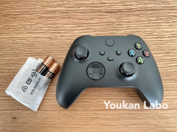 バッテリー内蔵式ではないため、単三電池2本を使用します。もちろん別売でバッテリーを取り付けることも可能ですが、ボクは歴代XBOXコントローラーは充電池(エネループ)で運用しております。